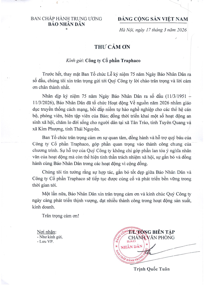 Tháng 3/2026, hành trình đồng hành vì cộng đồng của Traphaco tiếp tục được nối dài qua nhiều hoạt động ý nghĩa tại Tuyên Quang, Sơn La và Điện Biên. Ở mỗi điểm đến, đó không chỉ là những chuyến đi về nguồn để tri ân lịch sử, mà còn là dịp để những tấm lòng sẻ chia được trao gửi, để sự quan tâm được hiện diện bằng những hành động thiết thực dành cho người dân và học sinh tại các địa bàn còn nhiều khó khăn.