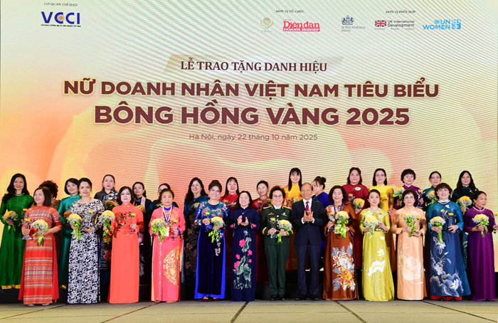 Tiếp nối diễn đàn, Ban Tổ chức cũng đã vinh danh 98 nữ doanh nhân Việt Nam tiêu biểu – Bông Hồng Vàng 2025, ghi nhận những người phụ nữ không chỉ chèo lái doanh nghiệp vững vàng mà còn kiến tạo giá trị nhân văn và lan tỏa cảm hứng đổi mới trong cộng đồng. Phát biểu tại lễ vinh danh, bà Mai Thị Diệu Huyền – Phó Chủ tịch Phụ trách Hội đồng Doanh nhân nữ Việt Nam (VWEC) cho biết: “Sức sống bền bỉ của Bông Hồng Vàng bắt nguồn từ giá trị nhân văn: khuyến khích phụ nữ phát huy năng lực lãnh đạo, đổi mới sáng tạo và xây dựng văn hóa kinh doanh Việt Nam. Mỗi danh hiệu được trao không chỉ là sự tôn vinh, mà còn là nguồn động lực lan tỏa niềm tự hào, khơi dậy khát vọng cống hiến và tinh thần trách nhiệm xã hội của hàng ngàn nữ doanh nhân Việt Nam.”