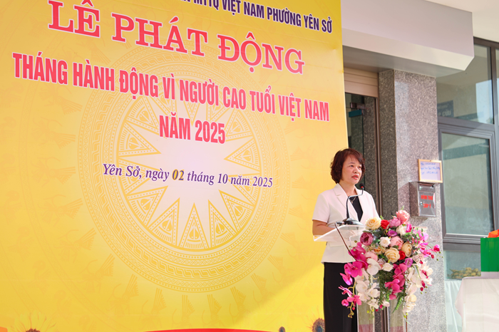 Tại buổi lễ, bà Trần Thanh Nga - Phó Chủ tịch UBND phường đã đại diện chính quyền phát động Tháng hành động vì người cao tuổi năm 2025 tại phường Yên Sở. Ông Vũ Tuấn Đạt - Phó Bí thư Đảng ủy, Chủ tịch UBND phường Yên Sở đã có phát biểu chỉ đạo, tiếp nhận tinh thần Tháng hành động theo kế hoạch của UBND TP. Hà Nội đồng thời gửi lời cảm ơn đến các ban ngành, đoàn thể, cá nhân đã đồng hành tổ chức sự kiện.