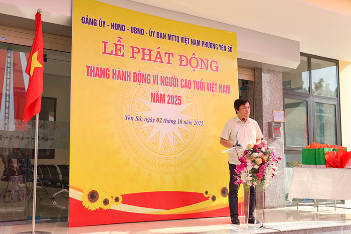 Lãnh đạo UBND phường Yên Sở phát biểu tại Lễ phát động Tháng hành động vì người cao tuổi Việt Nam năm 2025